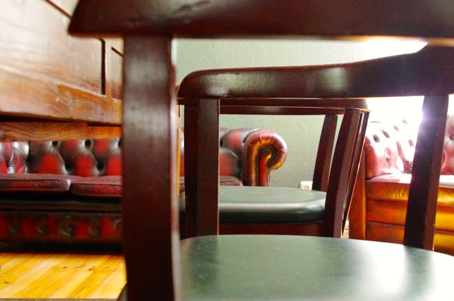 Die Sofas sind Original Chesterfield-Sofas, Stühle und Tisch stammen aus dem 19. Jahrhundert.